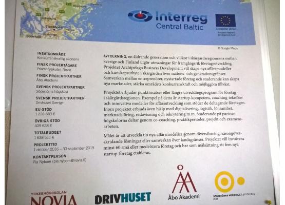 The project Archipelago Business Development, also knows as Archipelago Partnership, aims at developing new business models in the archipelago by forming partnerships between entrepreneurs and start-up companies in Finland (including Aland Islands) and Sweden. The project also aims at exchanging knowledge between existing businesses and new potential entrepreneurs.