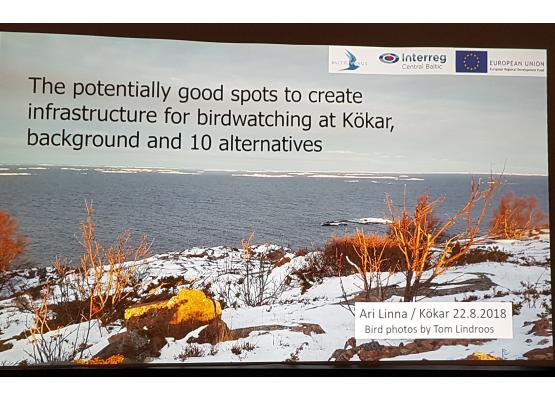 In the European context the Central Baltic region has great natural resources with relatively untouched wildlife areas, but is still rather unknown to nature tourists. The project aims to increase visits to already known sites for birdwatching and other nature activites as well as to develop new sites in order to extend the now short tourism season.